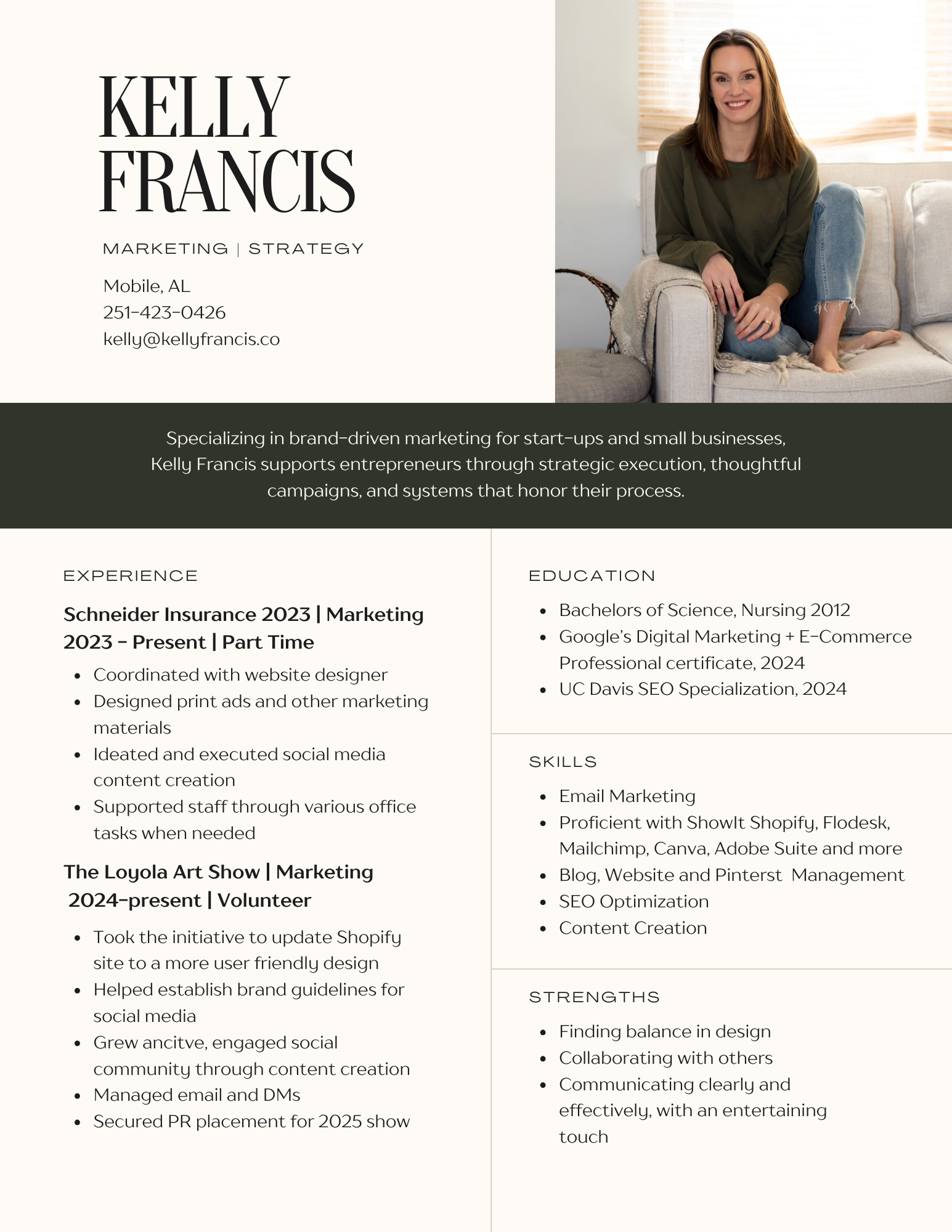 I specialize in brand-driven marketing for start-ups and small businesses, with a focus on community building. People tell me I'm "hard to find." That my mix of creative execution and calm, strategic energy is rare.